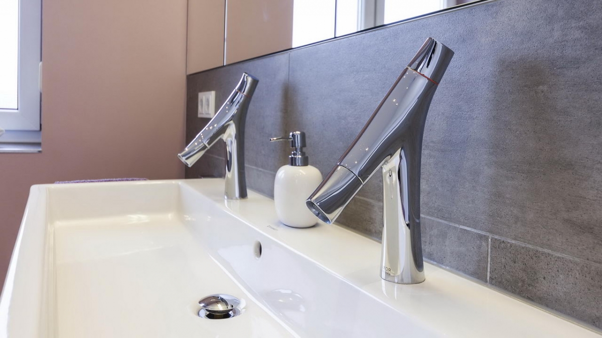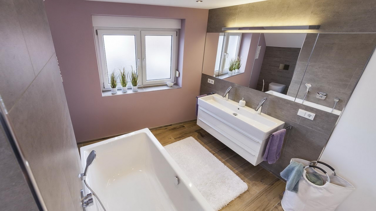 Das ursprüngliche Familienbad in dem erst elf Jahre alten Neubau war funktionell aber nicht originell. Badewanne, Dusche, zwei Waschtische und das WC waren ringsum an der Wand entlang platziert und in der Mitte war ausreichend Platz um Tango zu tanzen.